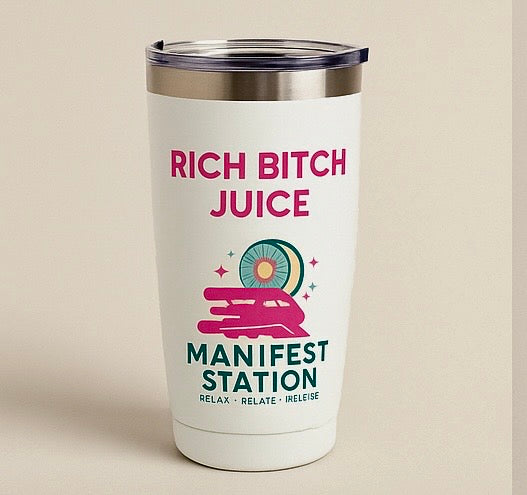 Stay hydrated and high-vibe with our signature Rich Bitch Juice tumbler. Perfect for your favorite CBD cocktails, herbal teas, or daily water goals, this double-walled stainless steel tumbler keeps your manifestation magic cold (or hot!) all day long. Featuring the Manifest Station ATX logo and attitude to match.